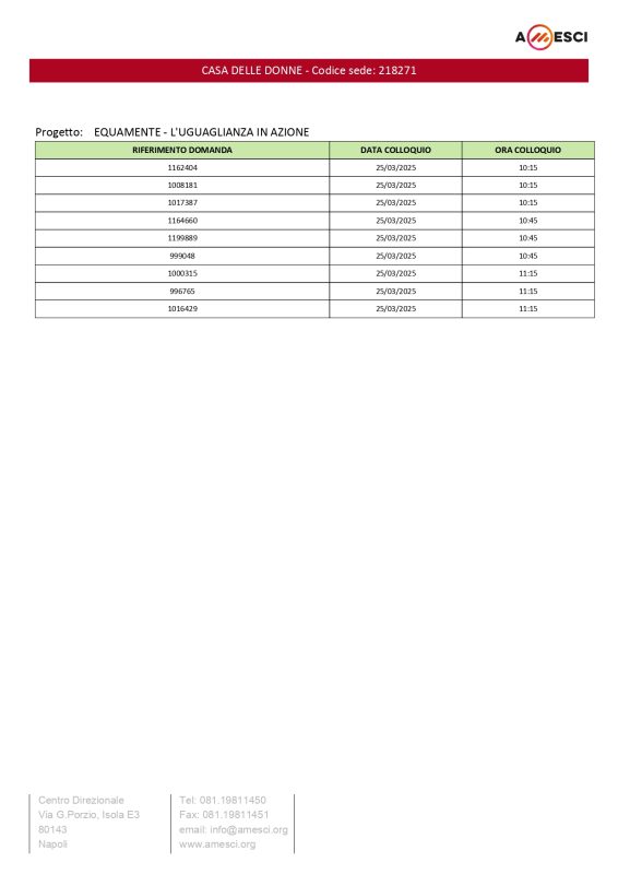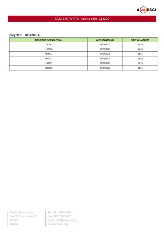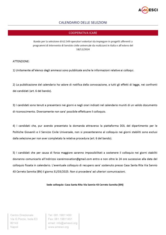Pubblichiamo il calendario dei colloqui per le selezioni per il Servizio Civile Universale 2024, relativo ai progetti ” disABILITA’ ” e “Equamente – L’uguaglianza in azione”, con date, orari e sede dei colloqui.