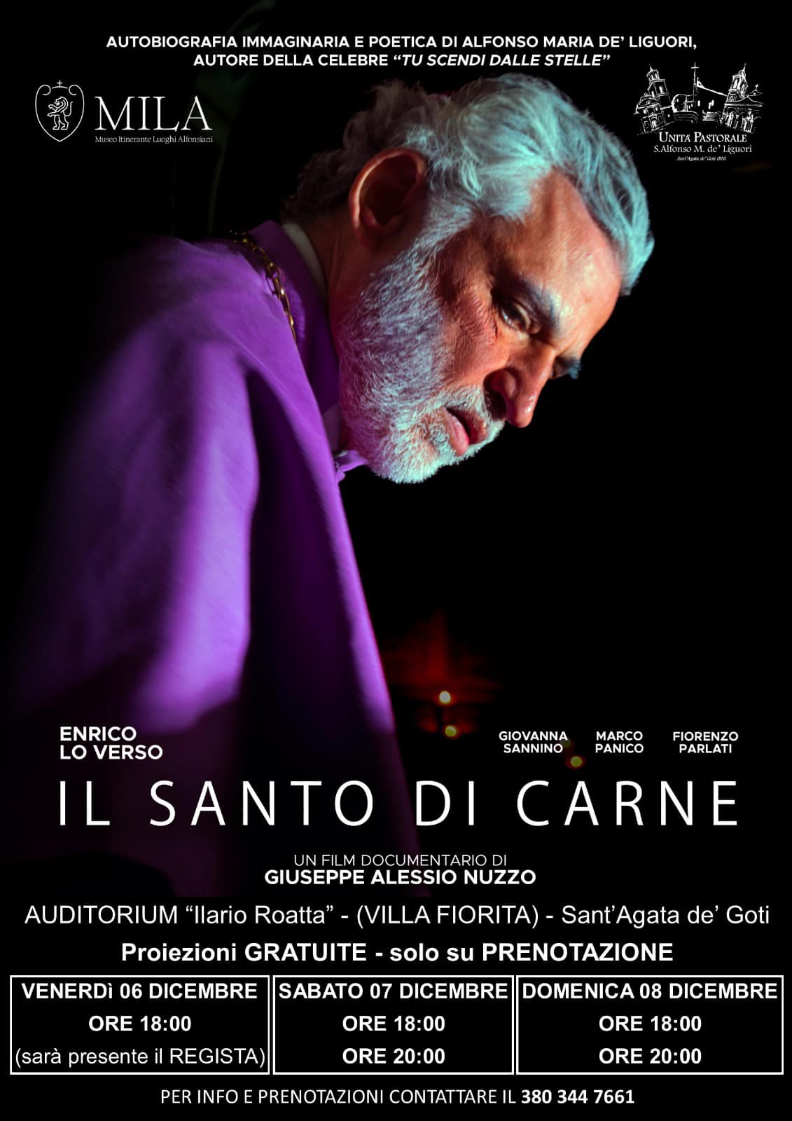 Week-end cinematografico a cura del “MILA-Museo Itinerante dei Luoghi Alfonsiani” a Sant’Agata de’ Goti (BN). Da venerdì 6 a domenica 8 dicembre 2024, infatti, presso l’Auditorium “Ilario Roatta” di Villa Fiorita, con ingresso gratuito, verrà proiettata un’autobiografia immaginaria e poetica di sant’Alfonso Maria de’ Liguori, tra vicenda terrena, opere, testimonianze e lascito spirituale. Intitolato “Il Santo di Carne”, il docu-film di Giuseppe Alessio Nuzzo ha per protagonista il celebre attore Enrico Lo Verso nei panni del vescovo santo, dottore della Chiesa e fondatore dei Missionari Redentoristi. Insieme a lui anche Giovanna Sannino, che interpreta suor Maria Teresa de Liguori, e Marco Panico, nei panni del giovane Alfonso. Scritta da Mariadiletta Coco e Giuseppe Alessio Nuzzo, la pellicola è liberamente ispirata alla lettera pastorale del 2014 “In dialogo con Sant’Alfonso” di mons. Antonio Di Donna, attuale vescovo di Acerra e presidente della Conferenza Episcopale Campana. Il docu-film è stato girato, tra le altre location, a Sant’Agata de’ Goti tra i luoghi in cui ha vissuto e operato il santo originario della zona Marianella (a Napoli) ed è prodotto da Giuseppe Piccolo e Giovanni La Montagna per Paradise Pictures srl, in collaborazione con London Movie Ltd, I.S. Alfonso Maria de’ Liguori, Diocesi di Acerra con il sostegno del Ministero della Cultura, Regione Campania, Film Commission Regione Campania. Questo film nasce dall’esigenza prioritaria e dalla volontà di far conoscere vita e opere di sant’Alfonso Maria de Liguori, che è proprio l’obiettivo principale del progetto “MILA” di iCare: la valorizzazione del patrimonio culturale e spirituale legato alla figura di Sant’Alfonso Maria de’ Liguori. La pellicola sarà in distribuzione da domani 5 dicembre e racconta, attraverso una narrazione in prima persona e le parole di chi oggi ne porta avanti gli insegnamenti, la vita del più napoletano dei santi e del più santo dei napoletani. Questi i giorni e gli orari della proiezione del docu-film “Il Santo di Carne”: