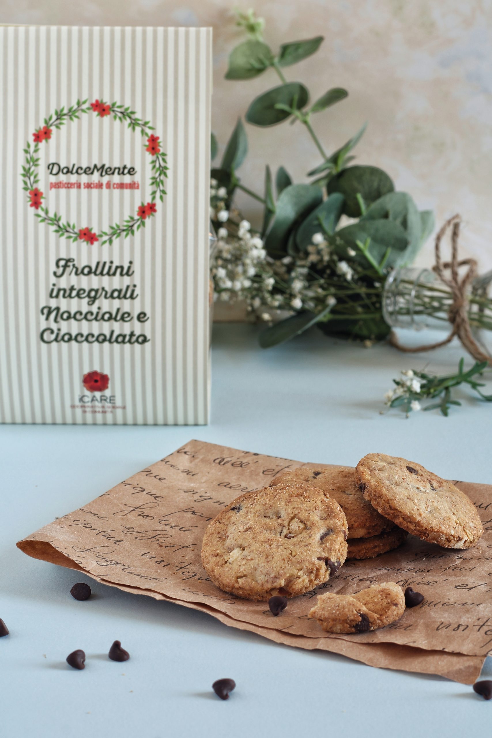 Gusto al quadrato in un biscotto friabile realizzato con farina integrale, impreziosita da pepite di cioccolato fondente e nocciole tostate.
